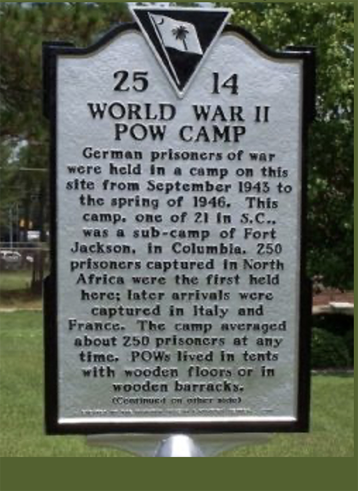 You’ve seen movies about Americans in German POW camps during World War II — “The Great Escape,” “Stalag 17,” and so forth. But did you know that more than 8,000 German – and Italian — prisoners were held right here in South Carolina during that global conflict?