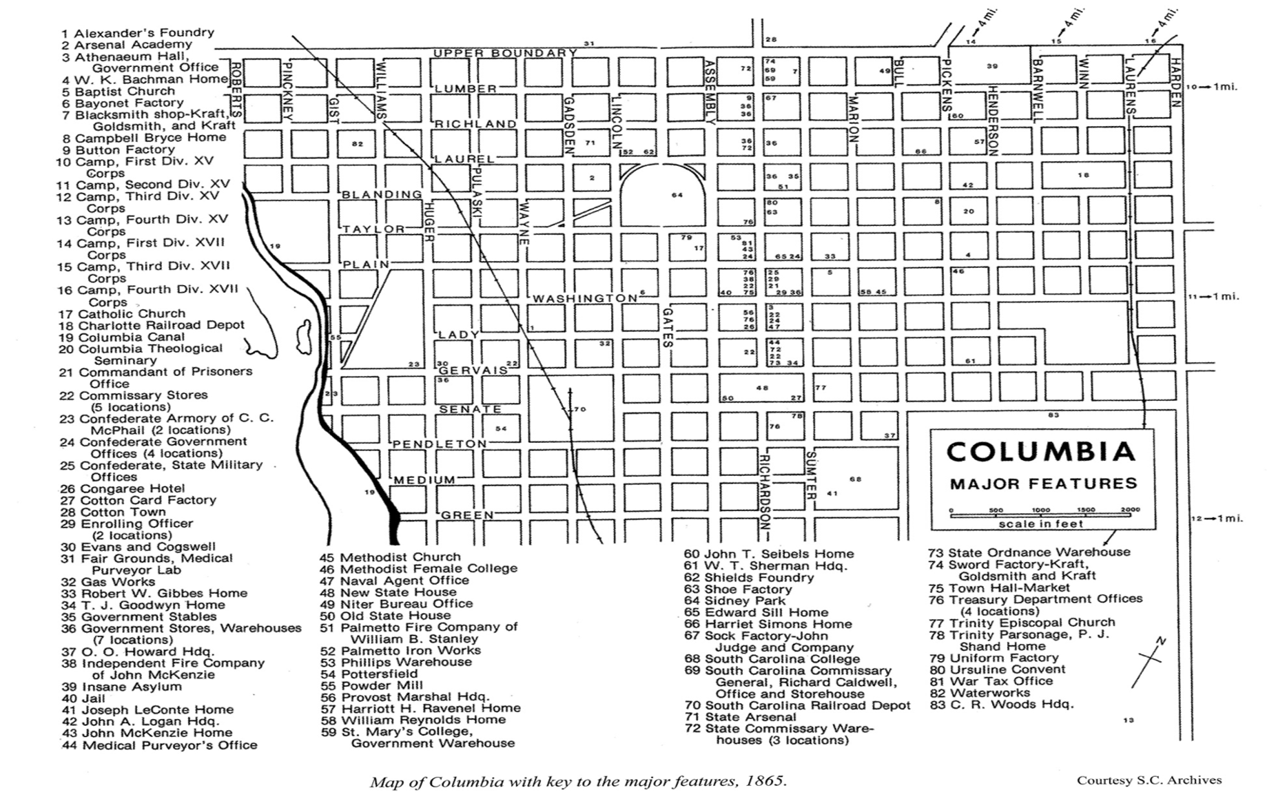 When Gen. William Tecumseh Sherman took Columbia in 1865, he captured a lot of stored Confederate munitions. Not wanting them to be used against his army as it marched farther north, he had his men dump them all into the Congaree River, near what would later be the Gervais Street Bridge.